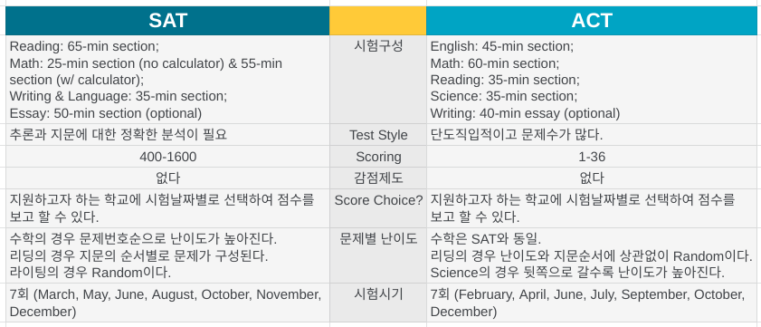 ACT는 학력고사 SAT는 수능